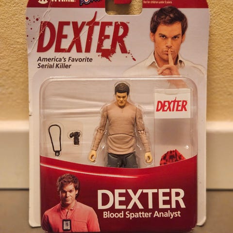 American Psycho ReAction Super7 figur, aldri åpnet og i perfekt tilstand, utenom litt kant slitasje på pappen. Bare hatt til utstilling i hylle.