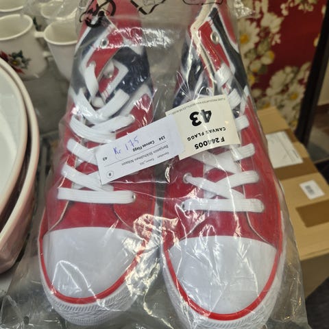 Helt nye sko i str 43 selges. Kun prøvd på. De glitrer og er i regnbuefarger.