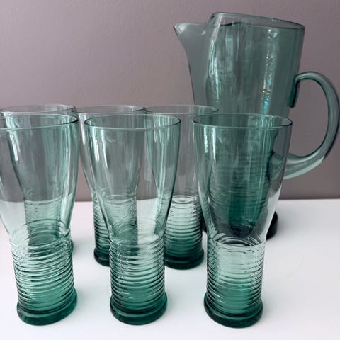 VINTAGE SETT I NYDELIG RAVFARGET GLASS