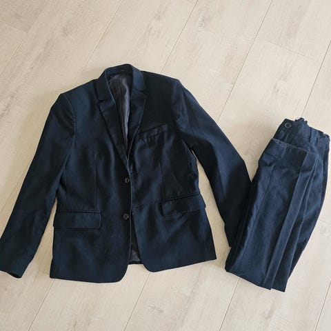 Selger en dress til barn, bestående av dressjakke og dressbukse i str 128 (7-8 år). Dressen er mørk blå og er fra H&M. Brukt et fåtalls ganger og fremstår som ny. Ny pris ca 799 kr. Selges for 500 kr.