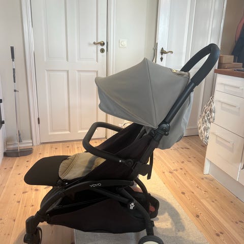 Babyzen Yoyo bassinet 0+ til vogn understell. Settet inkluderer liggedel/bag som festes på Babyzen Yoyo-vognens understell, samt adaptere for bilstol. Bagdelen har bærehåndtak og kalesje, og er egnet fra nyfødt. Lite brukt av en renslig baby, brukte alltid vognpose oppi