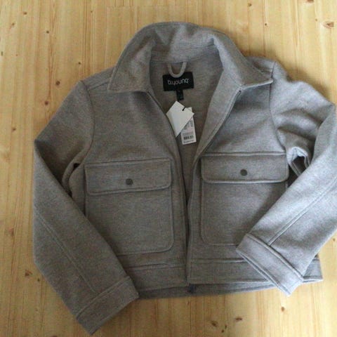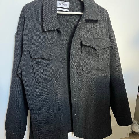 Veldig fin jakke i mørk grå farge. Nesten ikke brukt for den er altfor stor, dessverre.