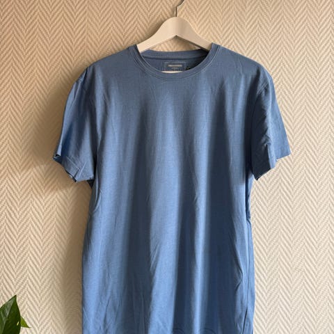 Dressmann skjorte for herre i størrelse L. Skjorten er blå og laget av bomull. Modellen har ståkrage og lange ermer med knappelukking i front. Passer til hverdagsbruk eller en enkel, pen stil sammen med bukse eller jeans.