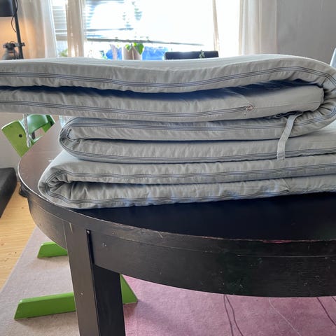 Sengekant med knytebånd gis bort