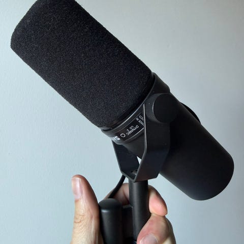 Shure SM7B dynamisk mikrofon i svart utførelse. Mikrofonen har XLR-tilkobling og integrert stativfeste med justerbar vinkel. Den er egnet for tale, vokalopptak, podcasting og kringkasting i studio- og hjemmemiljøer. Robust konstruksjon med innebygd vindskjerm og kapselbeskyttelse for nær opptakssituasjoner.
