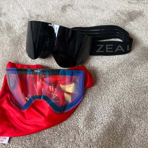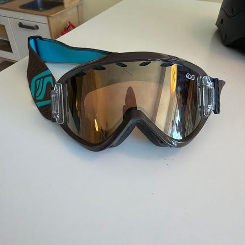 Skibriller i grå farge med sotet linse. Brillene dekker et stort synsfelt og har en sammenhengende frontlinse. Egnet til bruk ved ski- og snowboardaktiviteter eller annen vinterbruk der øynene trenger beskyttelse mot vind og lys.