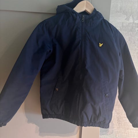 Selger lite og pent brukt Lyle & Scott jakke i str. 12-13 år til kr 499,- Jakken er i farge svart. Den ser litt grå/svart ut på bilde, men er svart. Har to innerlommer og to ytterlommer. Ytterlommene har glidelås. Jakken har hette og er foret. Den passer fint til vår/høst. Jakken er hel og fin. Kun blitt brukt noen få ganger.