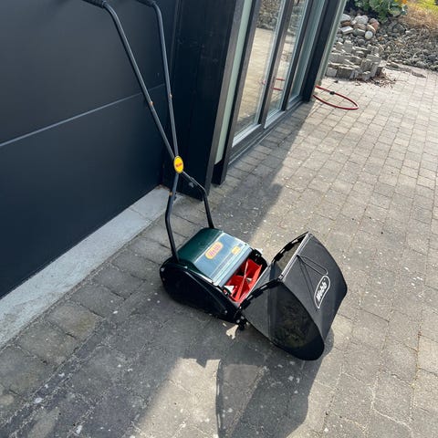 Skiftet gummirem ifjor, det var ikke helt beint fram. Den henger derfor av og til og du må trekke den tilbake og få den til å lystre. Muligens å justere/smøre for at den ikke skal henge innimellom - men det gidder jeg ikke sysle med lenger. Kjøpt meg ny