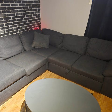 Svart sovesofa gis bort