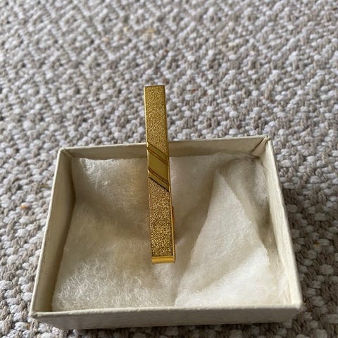Slipsnål i børstet gull 14k (585) med diamant. Metall bakstykke