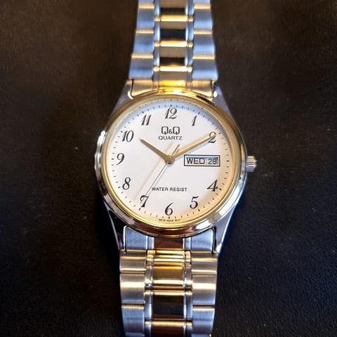 Selger for 130kr + frakt en lite brukt Q&Q quartz dameklokke. Plastfilmen på baksiden er ikke revet av endå. Klokken har ikke reim og trenger ny batteri!