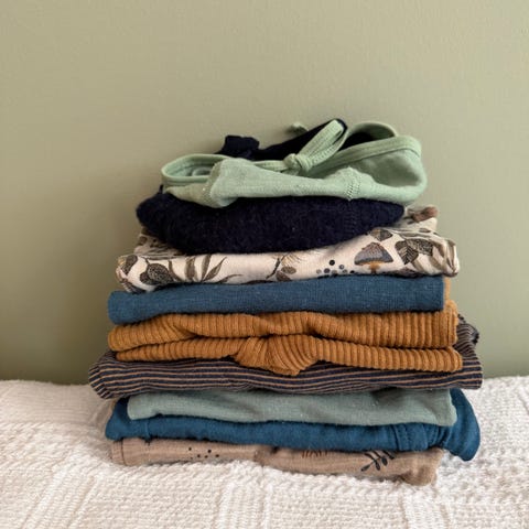 Flerpakning med barneklær.