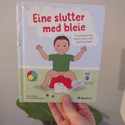 Bleiefri Eine slutter med bleie barnebok på norsk. Boken handler om barnets overgang fra bleie til potte og tar for seg grunnleggende trinn i potte- og do-trening. Innholdet beskriver situasjoner der barnet lærer å kjenne etter når det må på do, og hvordan barnet kan øve seg på å bruke potte. Teksten er tilpasset små barn og kan brukes som støtte i potte- og do-trening hjemme. Hard perm med illustrasjoner på hver side.