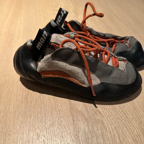 Selger et par klatresko. Skoene er brukt, men fortsatt i god stand og fullt brukbare til klatring og trening.
