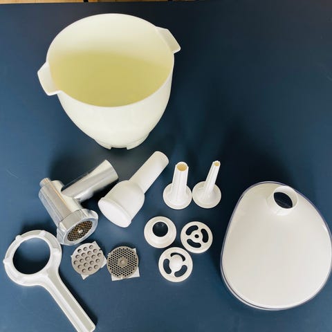 Kenwood kjøttkvern- og pølsehornsett til kjøkkenmaskin.