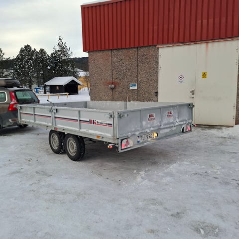 Dette er en veldig solid og god henger med tipp og kjørebru plana er 5 meter lang og 215 brei. Alle lemmer kan tas av hel og fin tralle. Selges grunnet lite bruk. Godw dekk og bremser alt av lys funker Selges 79000