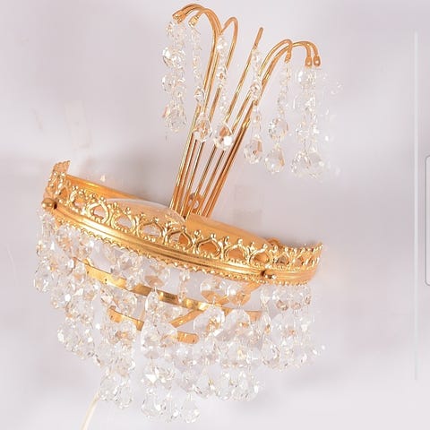 Sjeldent pen og glansfull gullfarget, retro prismelampe for tak eller vindu. Nøye sjekket og velfungerende. Et blikkfang av en lampe