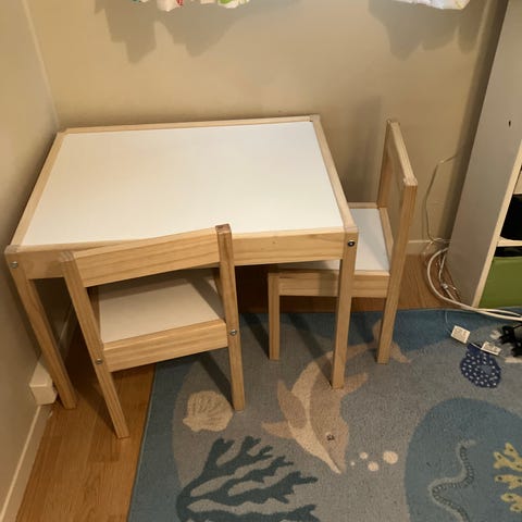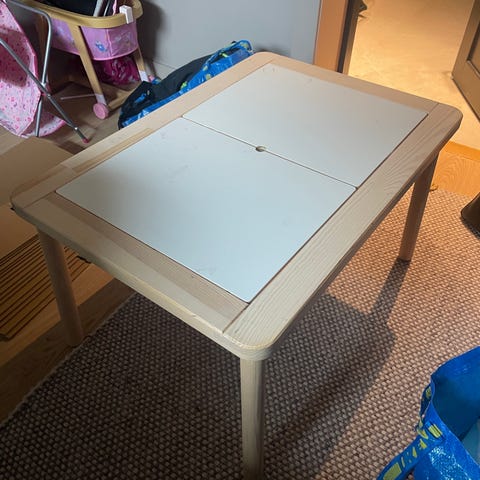 Ett eller flere barn kan leke på egen hånd ved dette store, lange bordet, siden de kan nå frem til alt.