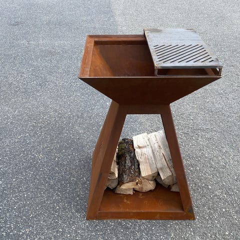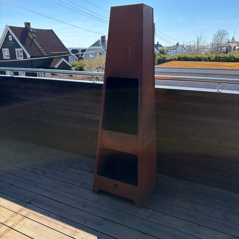 Kjempefin bålpanne / utepeis selges. Morsomt materiale som endrer seg hele tiden som du kan se ut ifra bildene. Denne er laget av elever ved Thor Heyerdahl VGS så den er ganske unik. Hatten på toppen kan løftes av, eller rotere den alt etter ønske. Under er det et stort rom til oppbevaring av brensel.