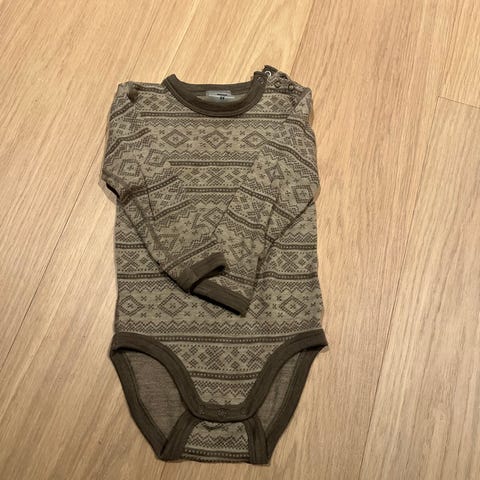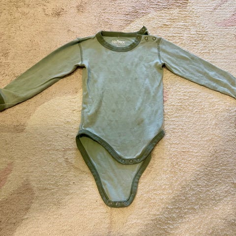 Reflex body for barn i størrelse 98. Langermet unisex-modell i grønn farge. Bodyen er laget i merinoull og har trykknapper på skulderen og i skrittet for enkel av- og påkledning. Passer til hverdagsbruk og som innerlag på kjøligere dager.