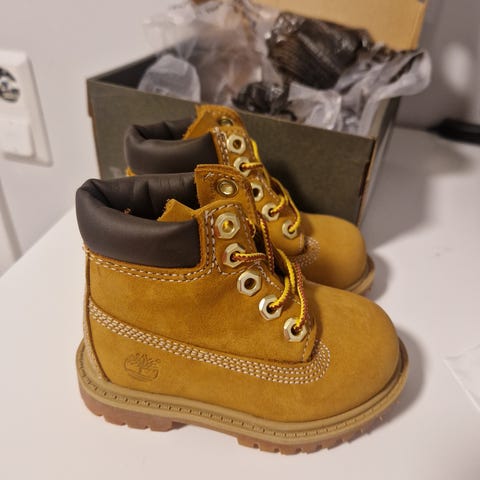 Timberland barnesko i størrelse 25 for unisex. Klassiske brune snørestøvler med kraftig yttersåle og polstret ankelparti. Overdel i nubuck-lignende materiale med karakteristiske sømmer og Timberland-logo på siden. Egnet som hverdagssko og til bruk ute i variert vær for barn. Pent brukt uten slitasje!