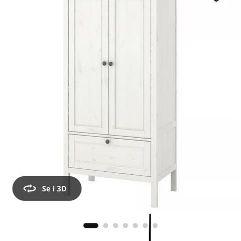 Garderoben er malt i hvitt. Selges grunnet flytting. Den er dyp nok til å romme kleshengere i vanlig voksenstørrelse.