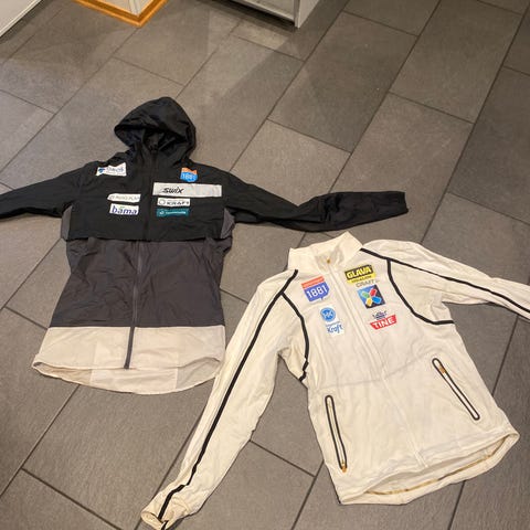 SWIX ski-jakke str. L, passer til str. M. Vindtett, varm og god. God og tett ved handledd. Høg og mjuk hals. To glidelåslommar. Den eine treng ein liten søm-reparasjon, sjølve låsen er i orden. Jakke lengde 67 cm, armlengde 60 cm. SWIX ski-bukse str M. To lommar med glidelås. Glidelås i begge sider i heile lengda av buksa, enkel å ta av og på. Bukselengde 95 cm, breidde i livet 34 cm, med snor justering. Sel begge to sammen. Vask 40 grader, Polyester, ull og bommull. Svært fint brukt, ingen lukt. Håpar den finn ny eigar :) Eg sjekkar finn dagleg, og kan sende dressen kjapt, før påske.