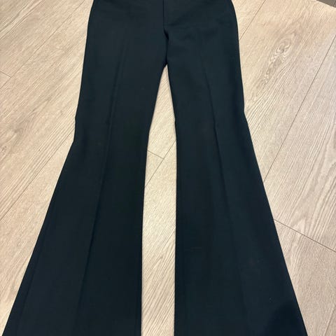Zara bukser for dame i størrelse M. Buksen er grønn og laget i polyester. Den har belte i samme stoff og farge, beltehemper i livet og lukking med glidelås, knapp og hekte foran. Passer som penbukse eller til hverdagsbruk.