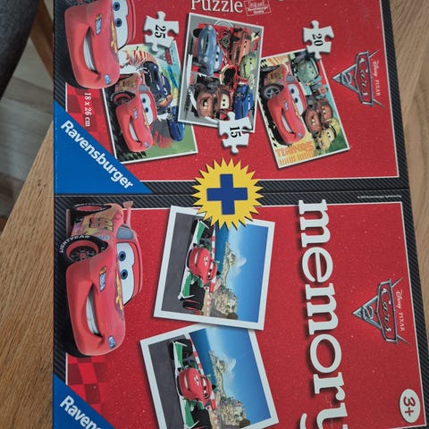 Disney Pixar Cars 2 puslespill med motiver fra filmen. Puslespillene viser flere av bilfigurene, blant annet racerbiler og bergingsbil. Hver plate består av store brikker som passer for barn. Egnet til rolig lek og trening av finmotorikk og bildegjenkjenning.