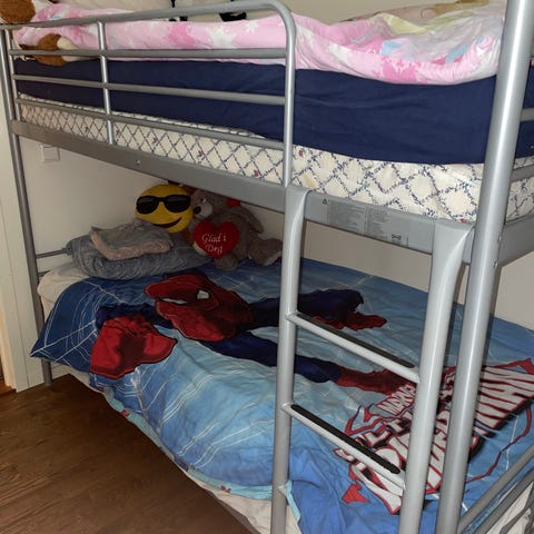 To gamle senger som er satt opp på hverandre til køyeseng gis bort. Tar liten plass og er perfekt til barn. Kan kun hentes 18.-19. april