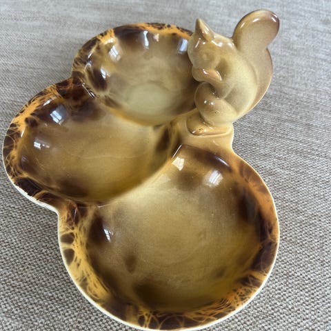 Søtt lite fat med 3 små fugler. En fugl er festet til fatet, de to andre er løse. Kan brukes som pynt eller til ringer, smykker eller nøkler.