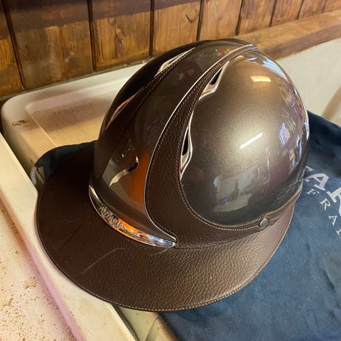 Selger en nydelig samshield hjelm da jeg har for mange. Str M i skallet og 56 i liner. Har et hakk oppå(se bilde). Kan sende dersom kjøper betaler frakt.