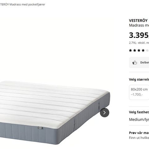 IKEA springfjærmadrass hvit, 160 x 200