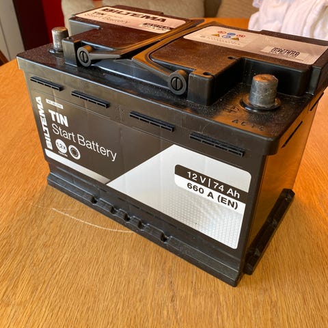 Ubrukt bilbatteri, kjøpt for et par år siden. Passer bla. Volvo XC60.