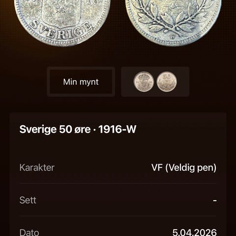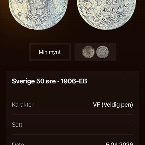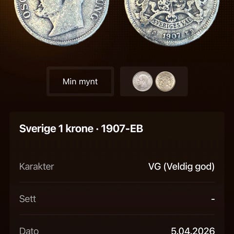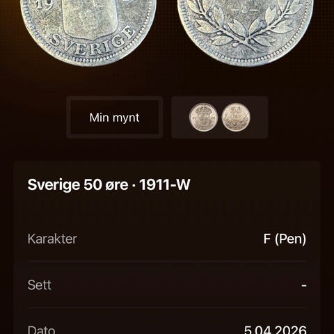 Info hentet fra CoinSnap appen. Mynten avbildet i appen er mynten som selges.