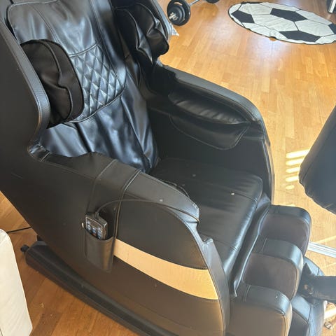 Massasjestolen har polstret sete, rygg og nakkedel, samt separate seksjoner for ben og føtter. Integrert kontrollpanel på armstøtten brukes til å styre funksjoner og innstillinger. Gir god massasje.