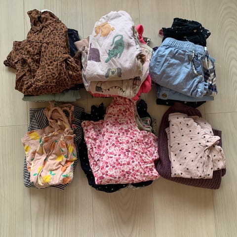 Klespakke i str 98/104 med 34plagg. De plaggene med ❌ over er solgt.