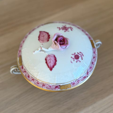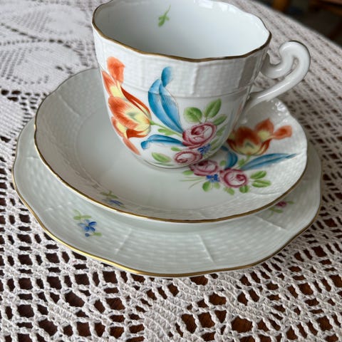 Kopp og skål i mønsteret Apponyi Pink fra Herend vurderes solgt