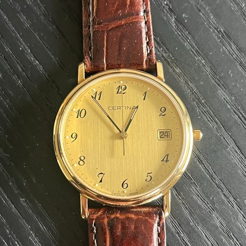 Kommer med ny brun reim med gull farget spenne og ny gullfarget mesh lenke