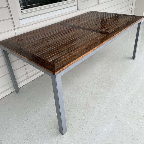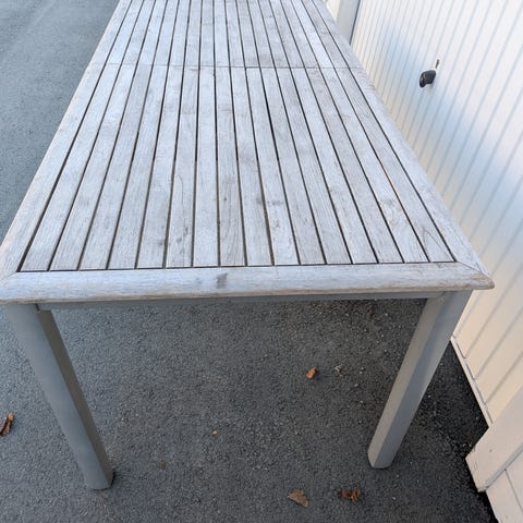 Husker dessverre ikke treslaget men det var i sin tid veldig dyrt bord. Ganske slitent men kan bli fint med litt pussing og treolje
