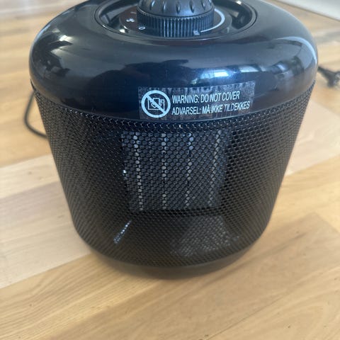 Vifteovnen er 90 cm høy og snur seg rundt når den er på for å spre luften mest mulig rundt i rommet.