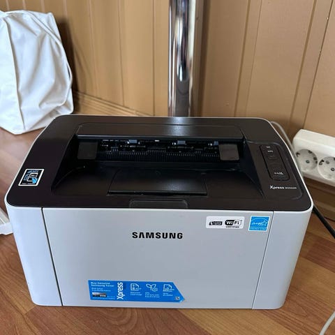 Samsung Xpress M2026W laserskriver i grå/svart utførelse. Monokrom laserskriver egnet for utskrift av dokumenter. Modellen har innebygd Wi‑Fi for trådløs tilkobling og kan kobles til datamaskin via kabel. Skriveren har toppmatede papirskuffer og frontmontert kontrollpanel med betjeningsknapper. Strømkabel følger med.