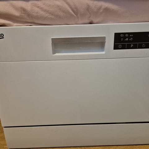 Ecotronic benkoppvaskmaskin i gul farge. Kompakt modell som plasseres på benk. Maskinen har frontåpning med én kurv for tallerkener, glass og bestikk. Innvendig er den i rustfritt stål med avrenningsrist og plass til standard servise for mindre husholdninger eller hybelkjøkken. Betjeningspanel med dreiehjul og knapper på høyre side av fronten for valg av program og innstillinger. Egnet for bruk der det er begrenset plass, som små kjøkken, hybler eller kontorer.