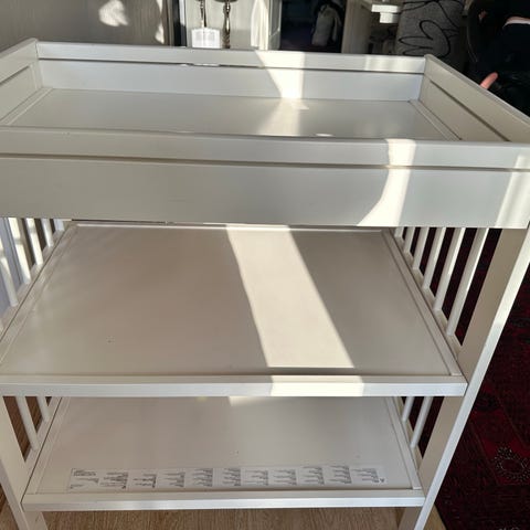 IKEA stellebord i hvit utførelse. Tror det heter Gulliver.