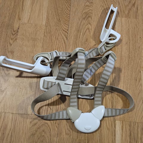 Selger denne pent brukte 5-punktsselen fra Stokke. Passer tripptrapp-stolene deres. Braketter til å feste i stolen medfølger.