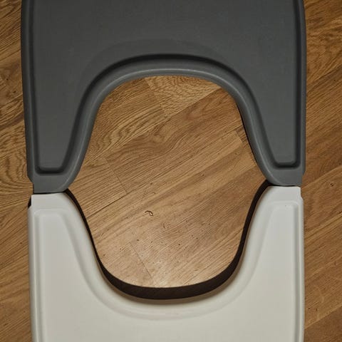 Selger dette Stokke spisebrettet som går til Stikkes tripp trapp-stoler. Hvit farge. Noen bruksmerker uten at dette hindrer bruk.