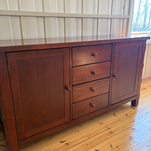 Fin og praktisk skjenk/kommode fra IKEA. Noen riper her og der, men ikke særlig synlig. Praktisk med både skuffer og skap.