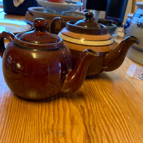 Sadler tekanne keramikk brun dekor landskap