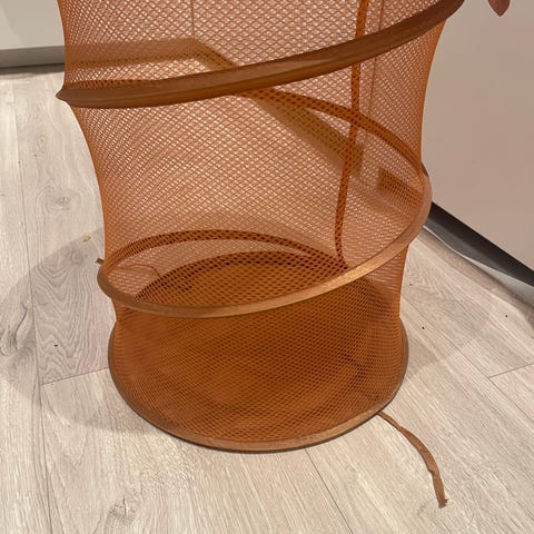 Skittentøyskurv laget av vannhyasint og en solid stålramme. Innsiden har et hvitt polyesterfôr. Det praktiske lokket holder skittentøyet ute av syne og gir et ryddig uttrykk. B36 x L45 x H57 cm