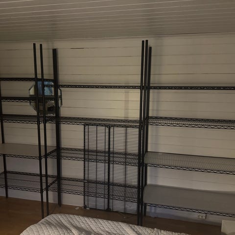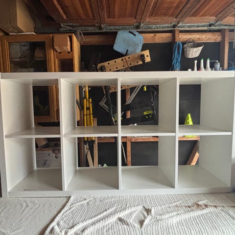 God lagringsplass for kjeller og bod. Selges demontert. Høyde 174 cm. Bredde 179 cm. Dybde 34 cm. Noe malingsflekker.